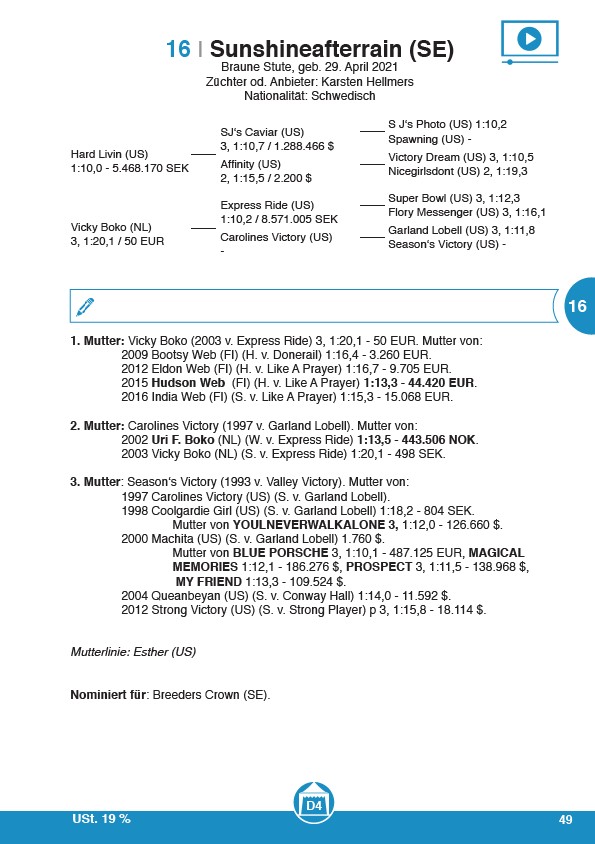 1. Mutter: Vicky Boko (2003 v. Express Ride) 3, 1:20,1 - 50 EUR. Mutter von: