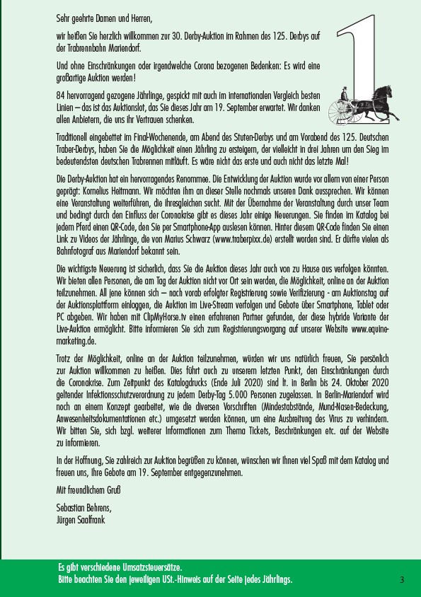 Bitte beachten Sie den jeweiligen USt.-Hinweis auf der Seite jedes Jährlings.
