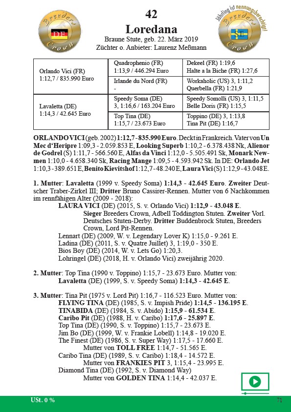 ORLANDO VICI (geb. 2002) 1:12,7 - 835.990 Euro. Deckt in Frankreich. Vater von Un