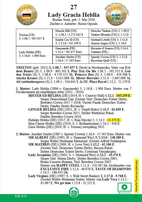 1. Mutter: Lady Heldia (2006 v. Ganymede) 3, 1:16,8 - 1.900 Euro. Mutter von 7