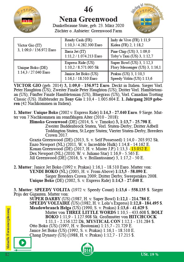 VICTOR GIO (geb. 2014) 3, 1:09,0 - 156.972 Euro. Deckt in Italien. Sieger Vorl.